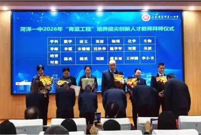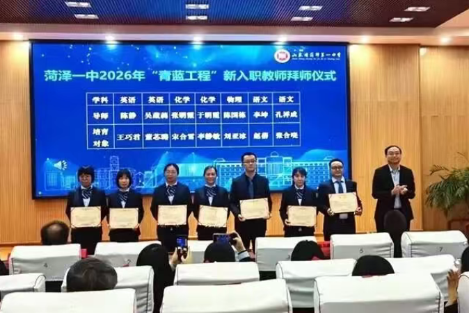 为进一步发挥骨干教师传帮带作用,助力青年教师成长,我校持续实施“青蓝工程”,形成青蓝相济、教学相长、师徒共进的良好局面。12月1日,“青蓝同辉共育英才 薪火相传赓续文脉”菏泽一中“青蓝工程”2025年总结表彰暨2026年启动仪式举行,总结既往成果,开启新一轮培育工作。