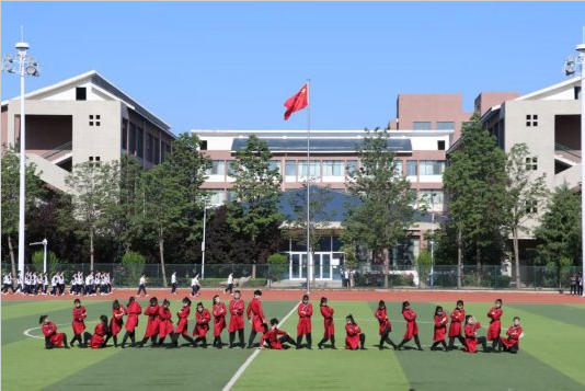 紧接而来的升旗仪式庄严肃穆。全体师生面向国旗,行注目礼,表达对伟大祖国的热爱和敬意。